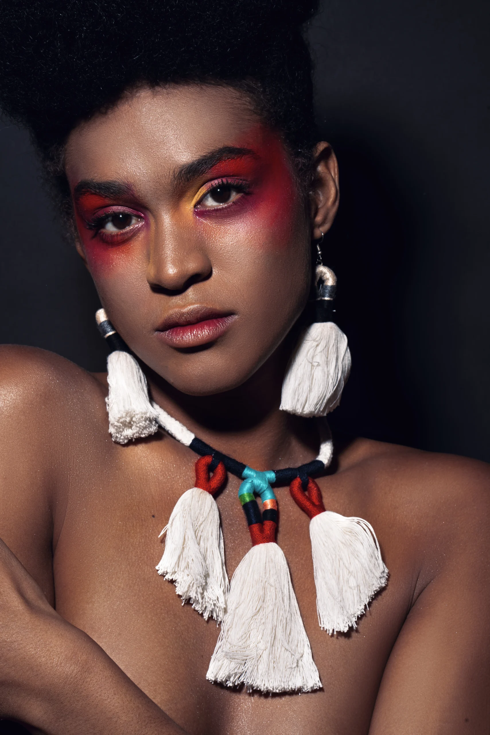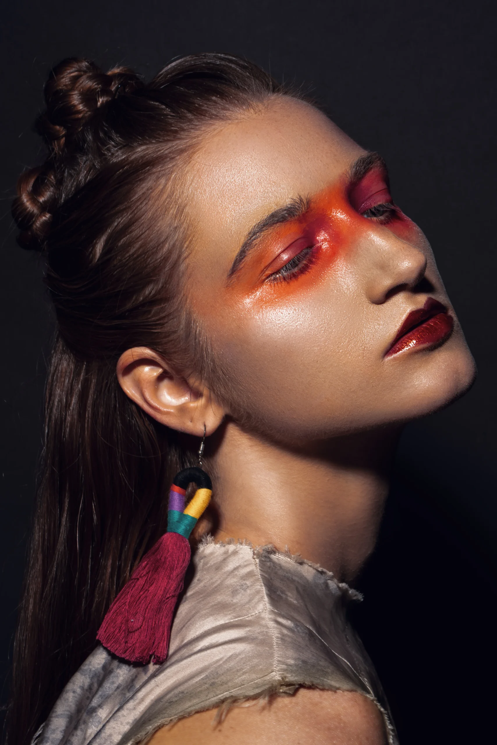 Un fuego que no devora, sino que renueva. La piel se enciende en tonos que recuerdan a la tierra viva: brasas, auroras, savia ardiente. En este arder habita la fuerza de la naturaleza, un resplandor que no destruye, sino que transforma, como la vida que surge después de la ceniza.