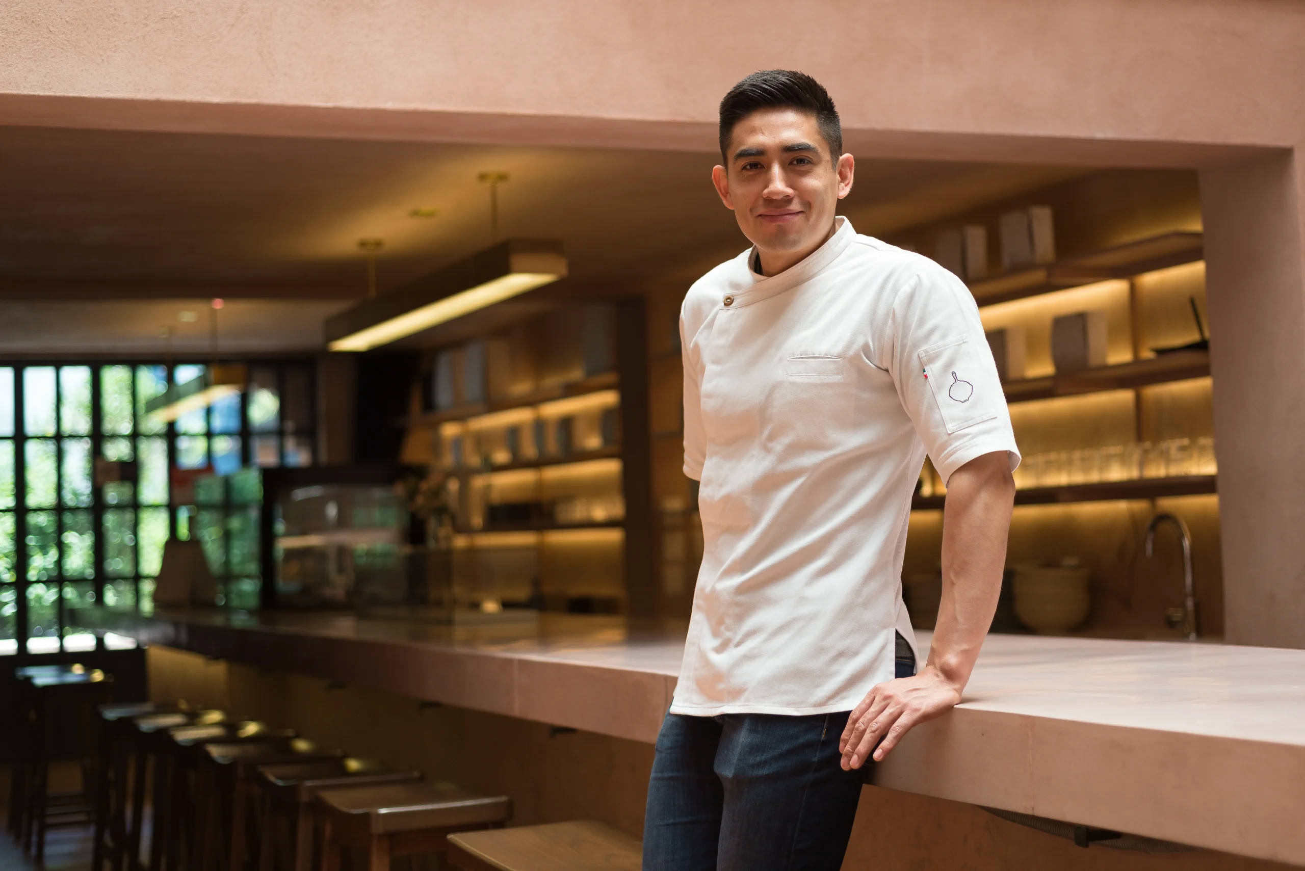 Nos recibe con una sonrisa en la calle Puebla 266, nos saluda e invita a pasar. El lugar, con tonos cálidos a la izquierda y más oscuros a la derecha, transmite equilibrio y tranquilidad; está diseñado para que el postre sea el protagonista. La barra conecta desde la entrada hasta la cocina abierta al público, un espacio pensado para que clientes y chefs convivan entre sí.
